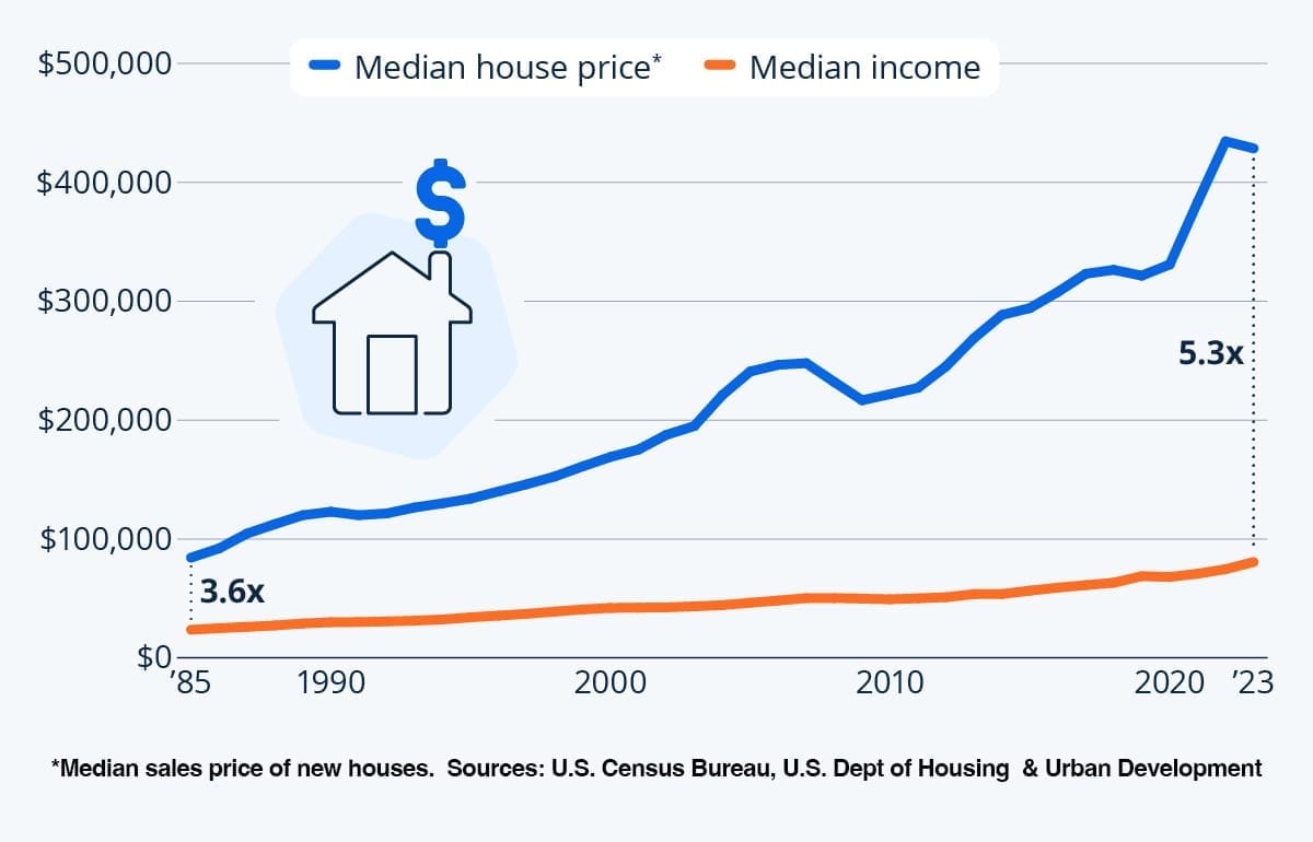 Housing costs skyrocketing: if you didn’t buy before 2020, when prices were HALF what they are now, you’re out of luck. And if you did buy, how will you ever move?